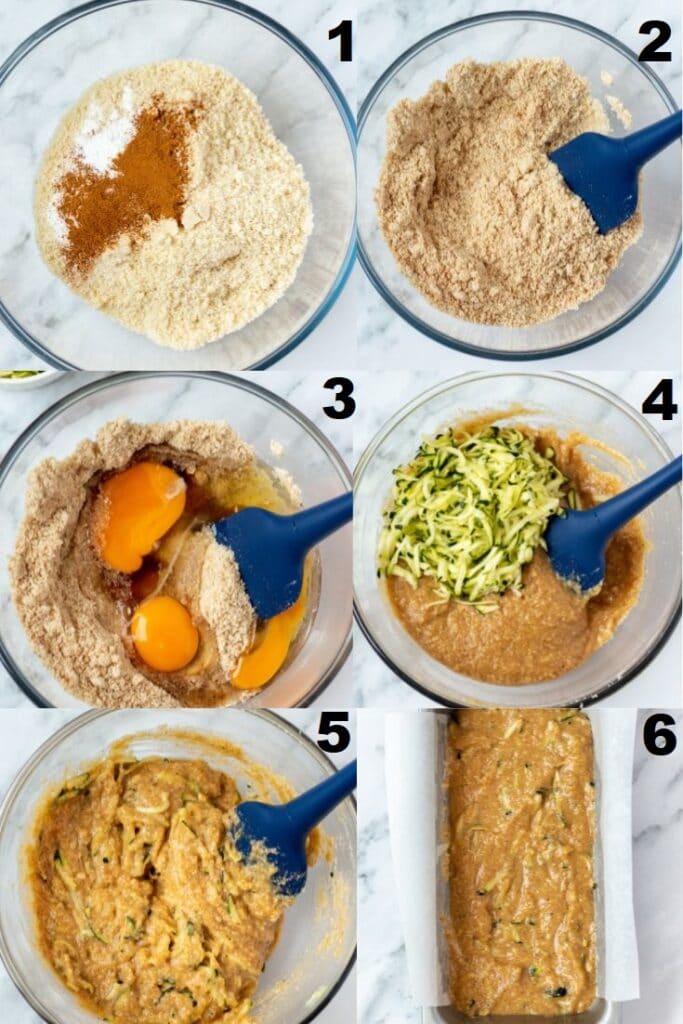 Ingredients to make keto zucchini bread in individual bowls.